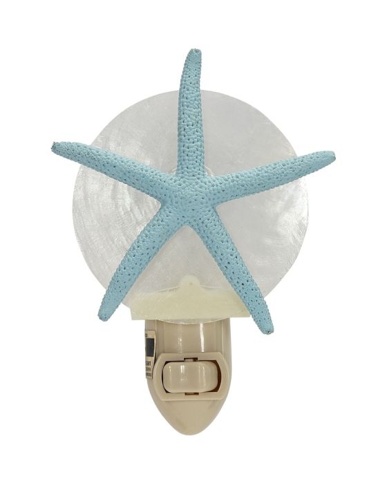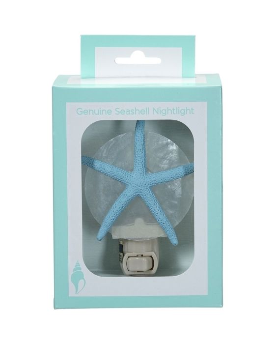 Bring the beauty of the ocean into your home with our Blue Starfish Boxed LED Night Light. This charming night light features a delicate white starfish design, perfect for adding a touch of coastal charm to any room. The LED light provides a soft and soothing glow, making it ideal for use as a night light in a bedroom or as a decorative accent in a living room. The compact size of up to 6" makes it easy to place anywhere in your home. Don't miss out on this must-have addition to your home decor from The Seashell Company. LED bulb is rated for 25,000 hours of use.