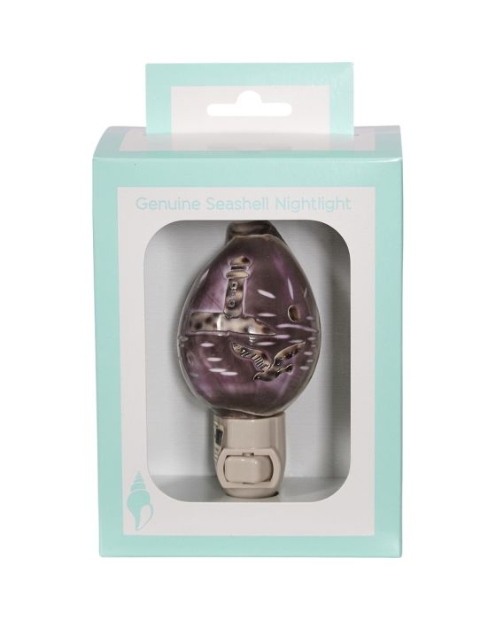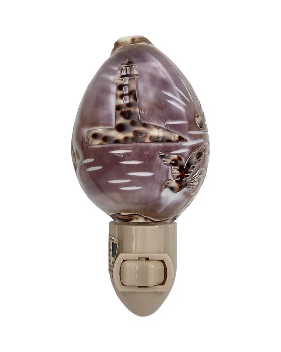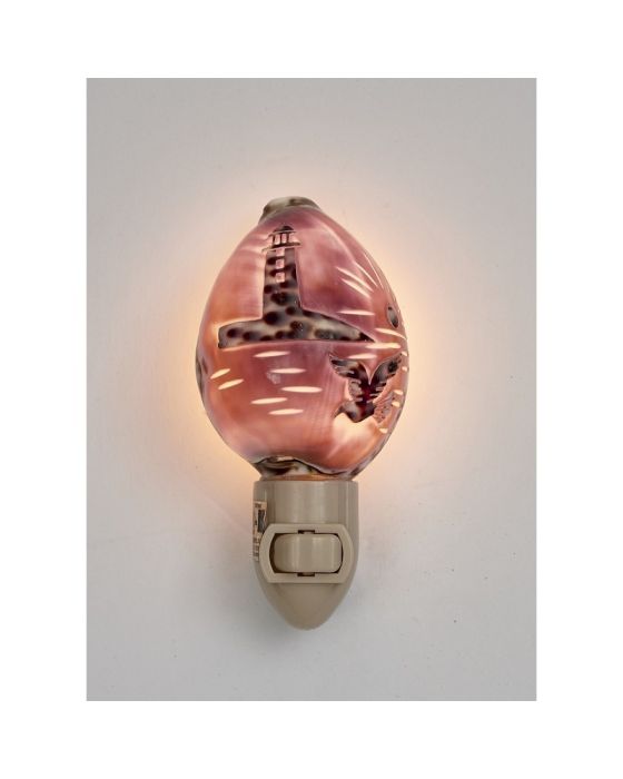 Bring the beauty of the beach into your home with our Carved Cowrie Palm Tree Boxed LED Night Light. This unique and charming night light features a hand-carved cowrie shell lighthouse design, perfect for adding a touch of coastal style to any room. The LED light provides a soft and soothing glow, making it ideal for use as a night light in a bedroom or as a decorative accent in a living room or bathroom. The compact size of up to 6" makes it easy to place anywhere in your home. Don't miss out on this must-have addition to your home decor collection from The Seashell Company. LED bulb is rated for 25,000 hours of use.