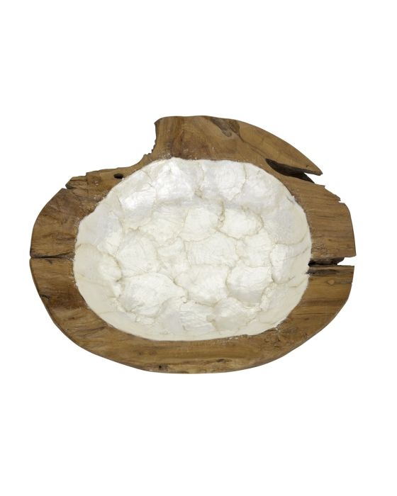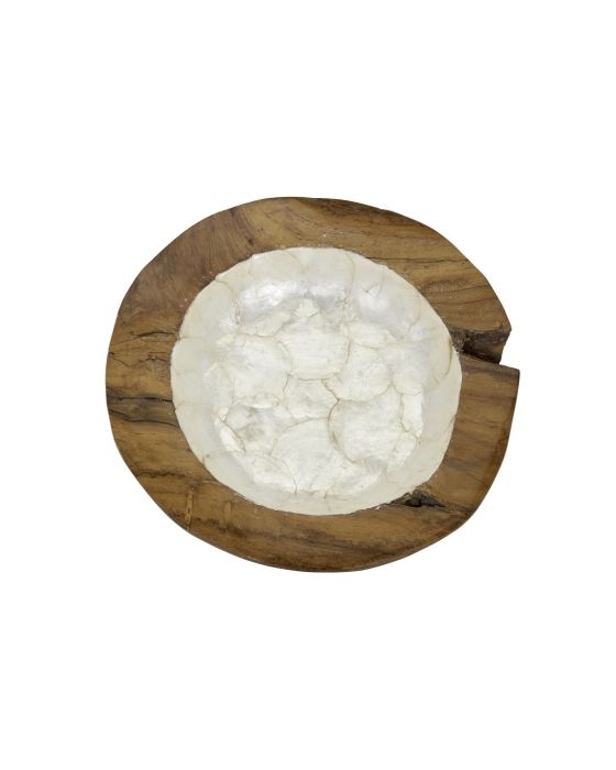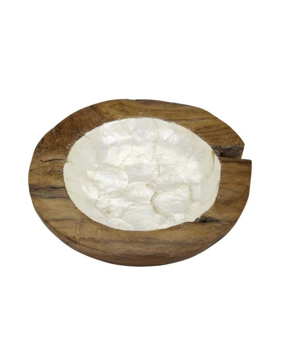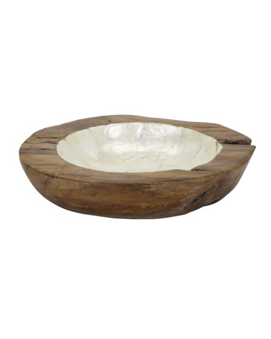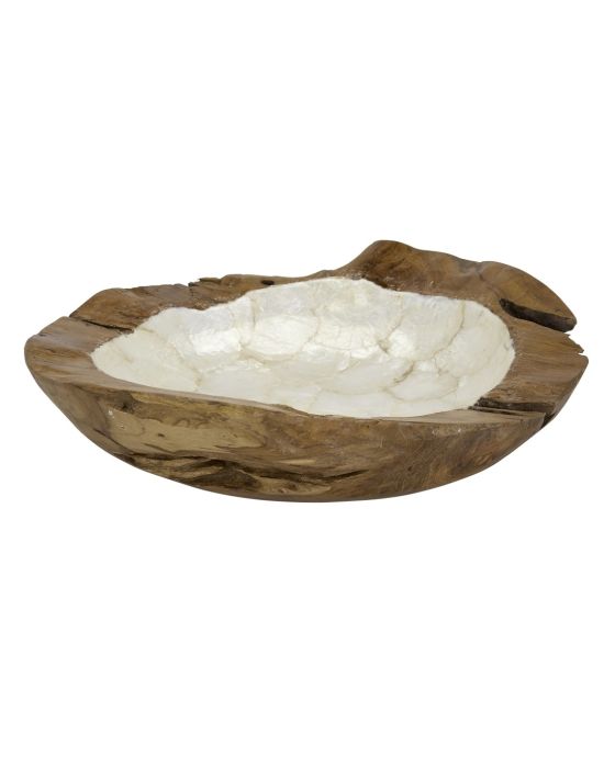 Natural Shape Wood Bowl Lined with Capiz Shell 13.8"x13.8"x3" Ivory