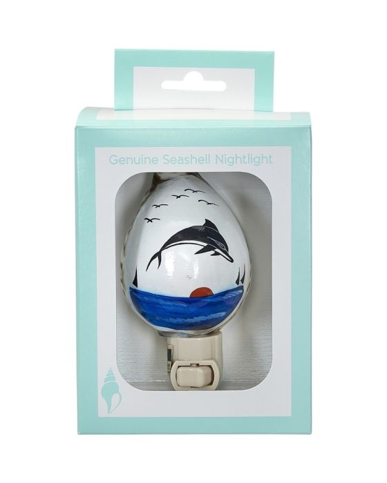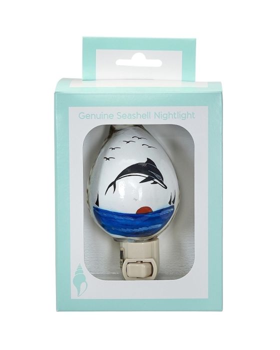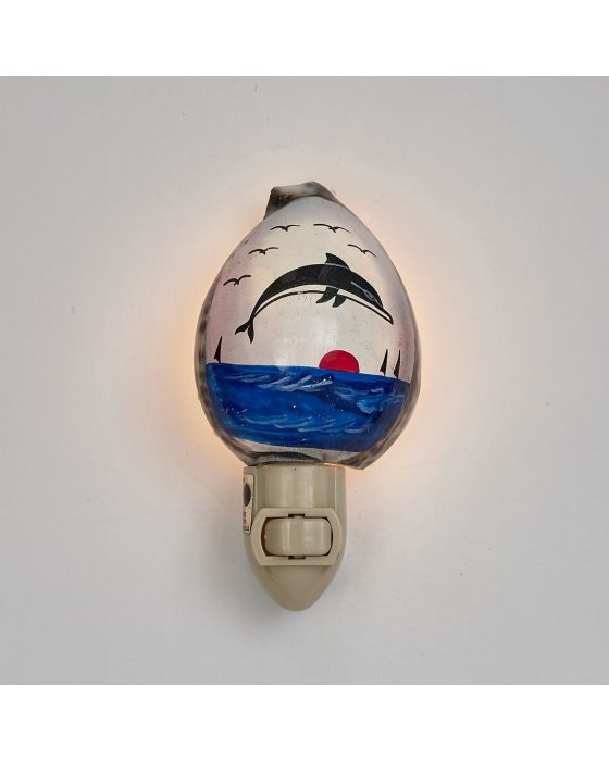Brighten up your home with our Painted Dolphin Boxed LED Night Light. This charming night light features a playful dolphin design, painted in vibrant colors. The energy-efficient LED light provides a soft glow, perfect for a child's room or as a decorative accent in any room. The compact size of up to 6" makes it easy to place anywhere in your home. Bring a touch of the ocean into your home with our Painted Dolphin Boxed LED Night Light from The Seashell Company. LED bulb is rated for 25,000 hours of use.