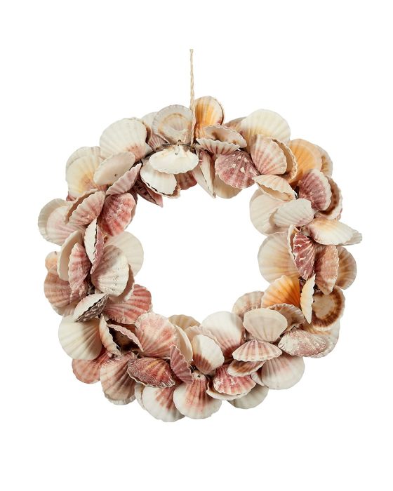 Decorate your doorway with this beautiful white wreath made of clam rose shells. Perfect wreath for any occasion including holidays and special events. Fits any season, too! Each handmade piece is intricately assembled. No two are exactly alike.