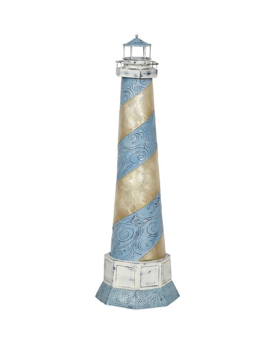 Capiz & Metal Art Blue Spiral Lighthouse Stand Light Blue/Beige 22x5x5" is available to buy in increments of 1